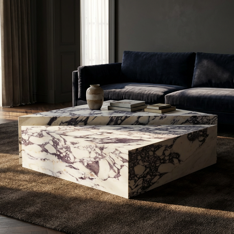 Calacatta Marble Set of 3 Colonne Dresuar Coffee Tables