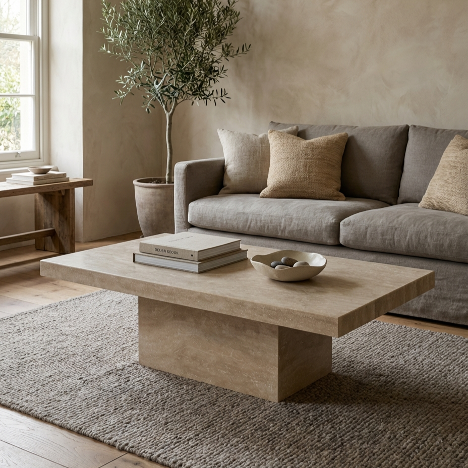 Classic Travertine Vein Cut Sphere Middle Coffee Table