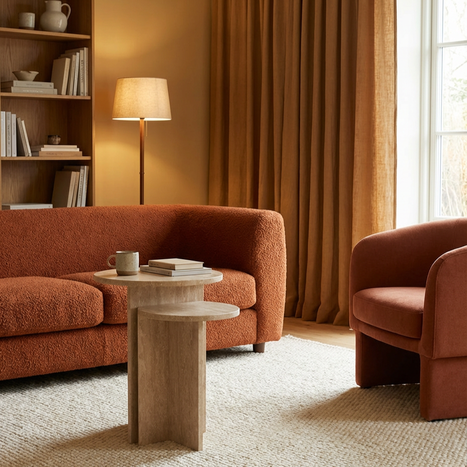 Red Travertine Round Side Coffee Table