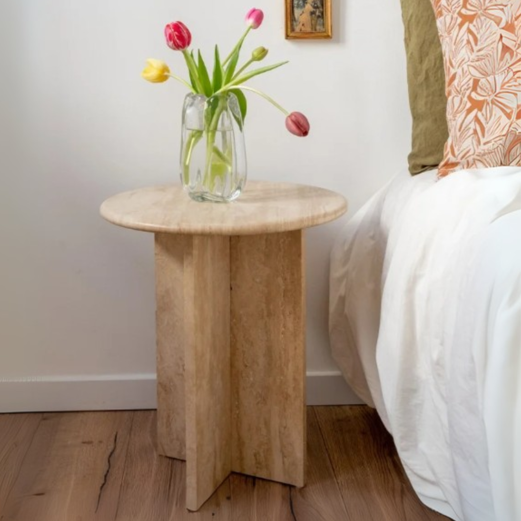 Classic Travertine Vein Cut T Legged Middle Coffee Table