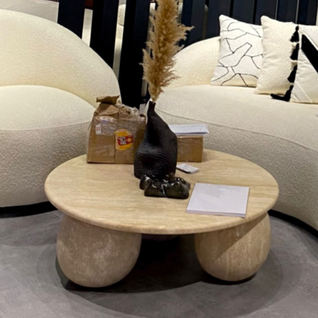 Classic Travertine Vein Cut Sphere Middle Coffee Table