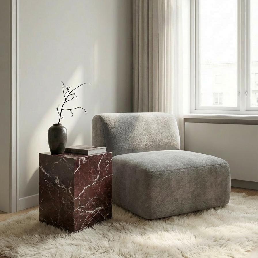 Elazığ Cherry Marble Cube Coffee Table