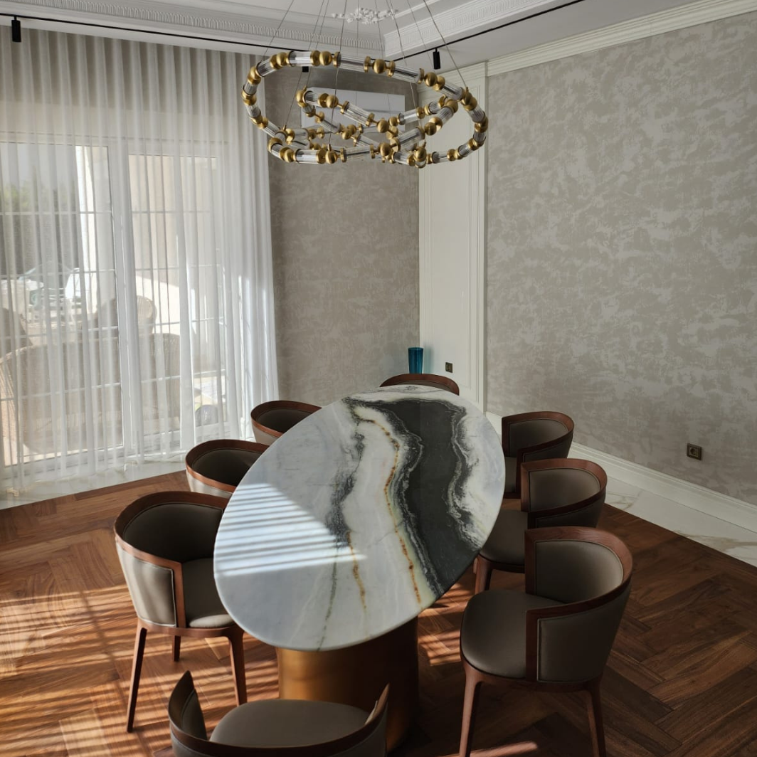 Brazilian Panda Beyaz Mermer Yemek Masası