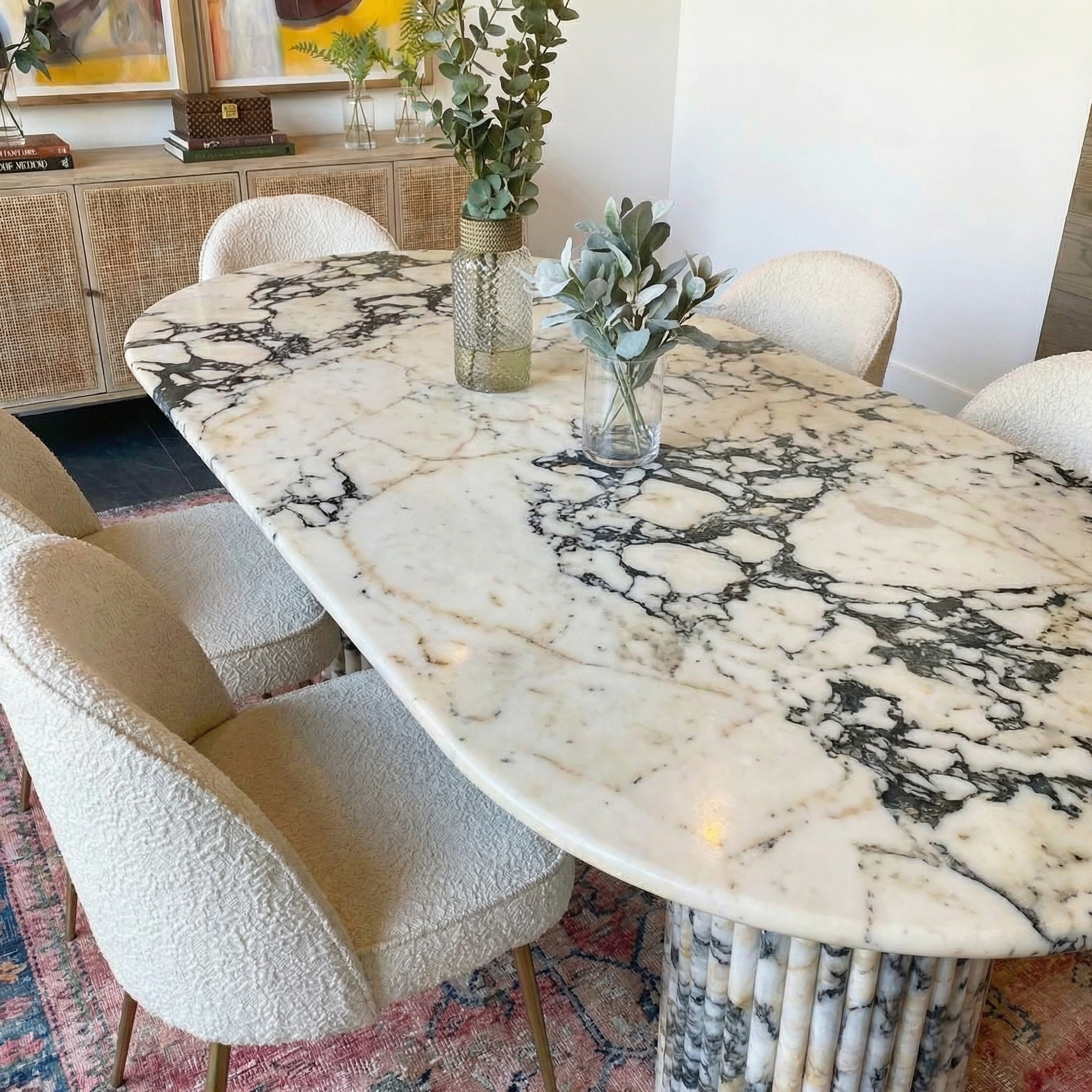 Rosso Levanto Mermer Yuvarlak Yemek Masası