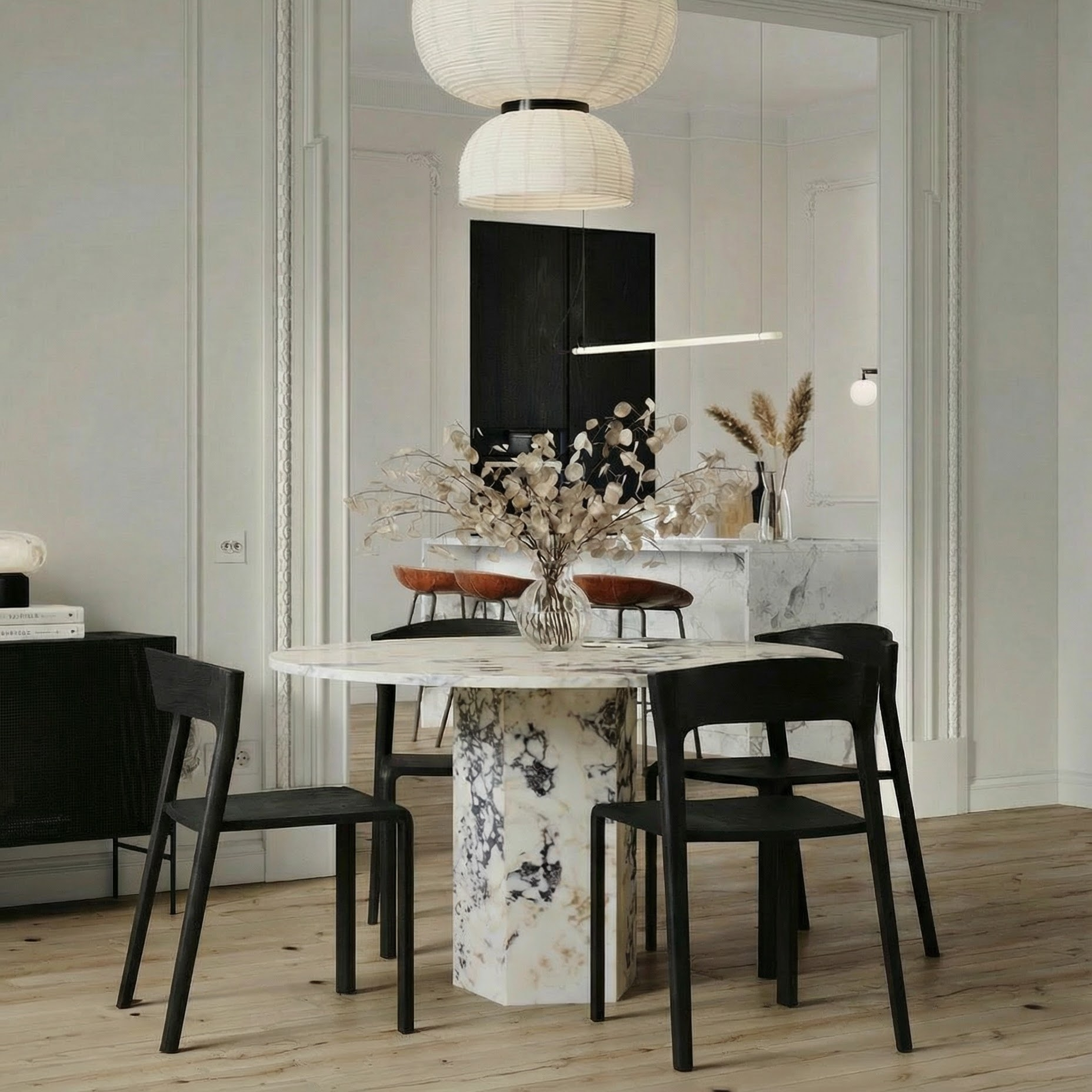 Verde Forest Mermer Modern Yuvarlak Yemek Masası