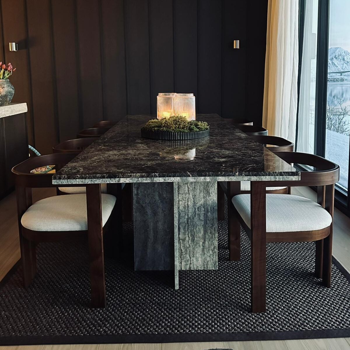 Dark Emperador x Gümüş Traverten Özel Tasarım Yemek Masası