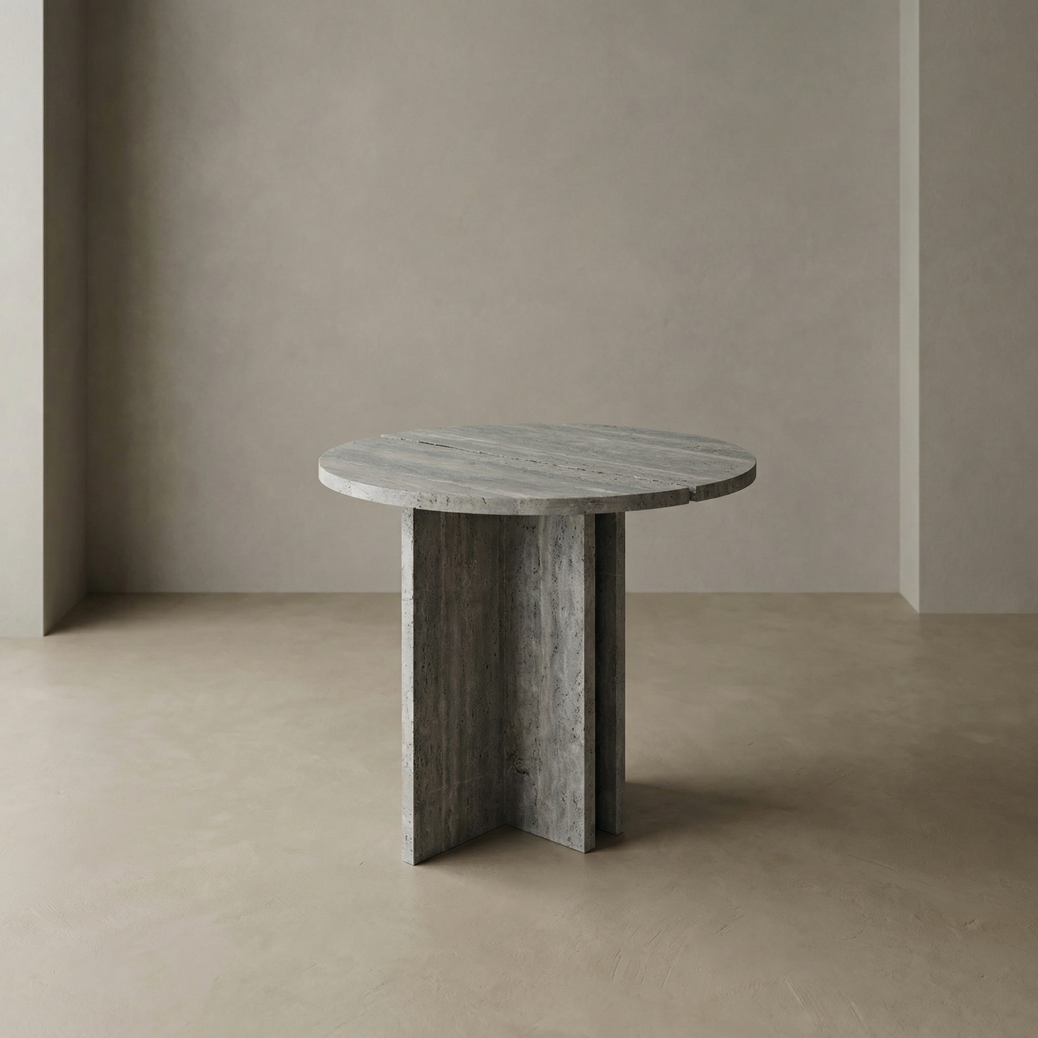 Gümüş Traverten Vein Cut Yuvarlak Yan Sehpa