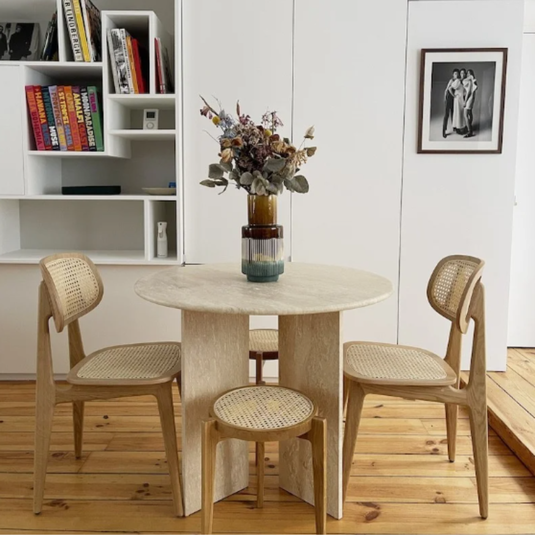 Klasik Traverten Cross Cut Yuvarlak Yemek Masası