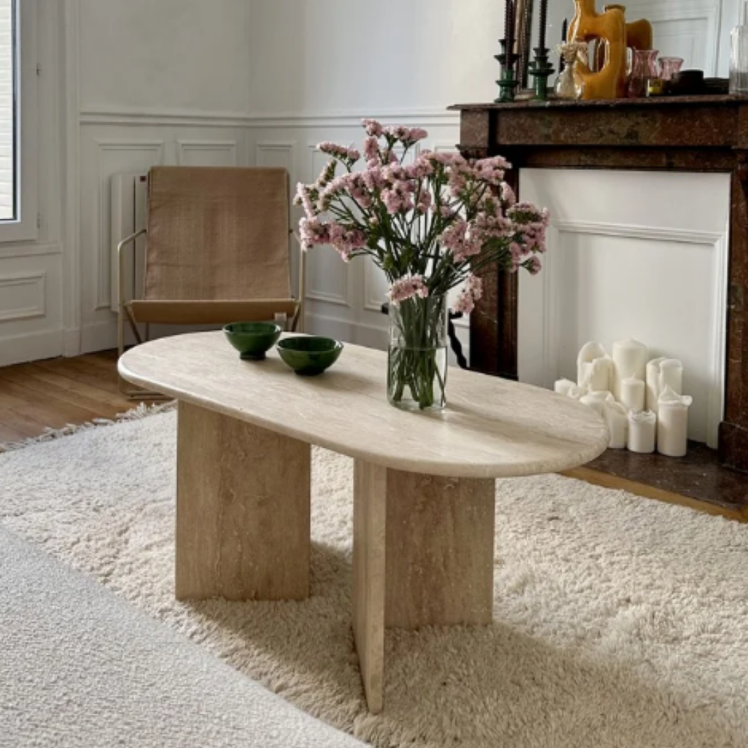 Ivory Traverten Vein Cut Komodin Sehpa