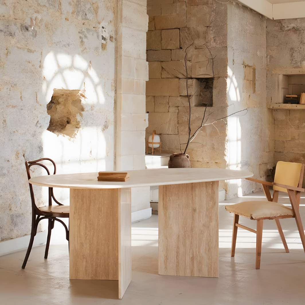 Klasik Traverten Vein Cut V Ayaklı Modern Yemek Masası