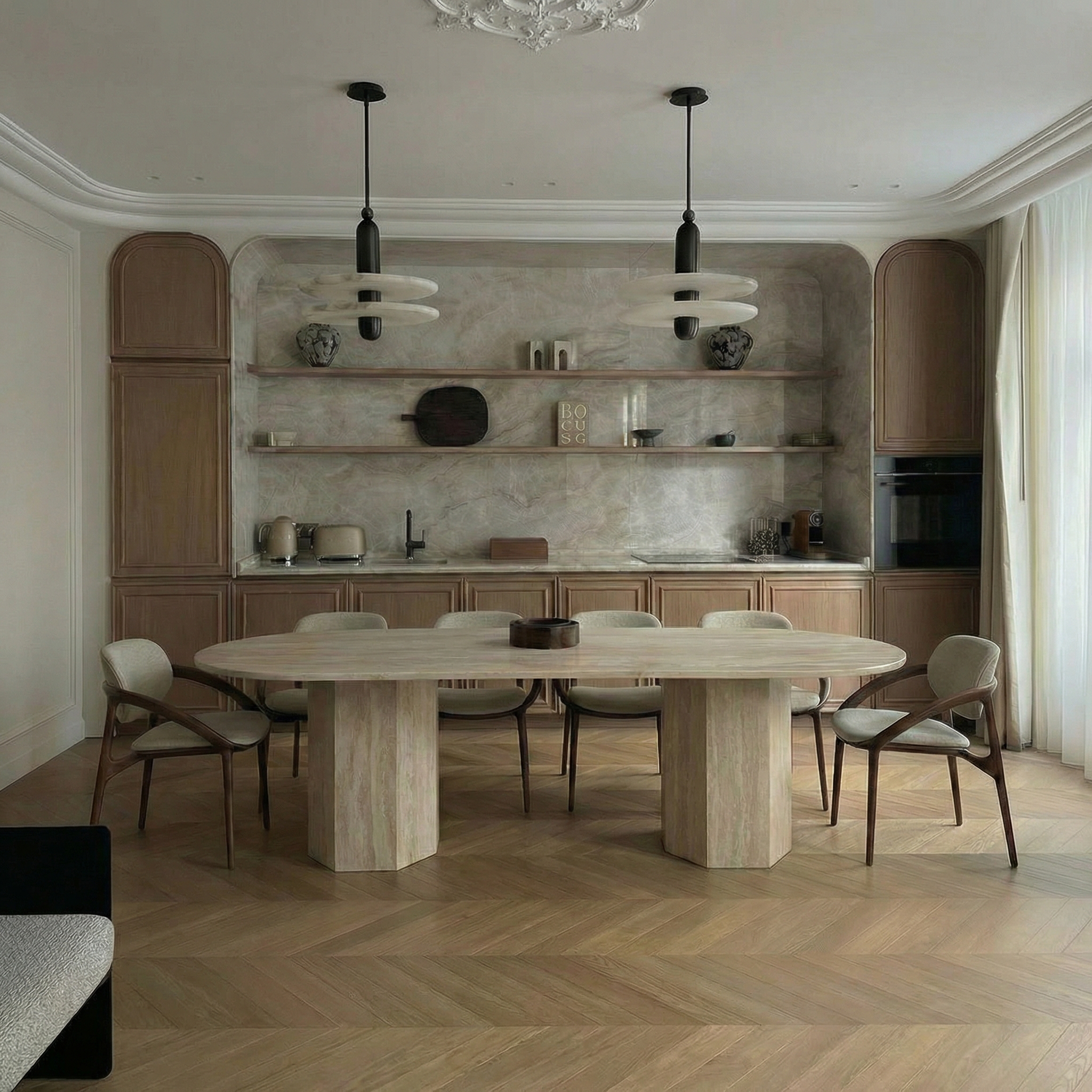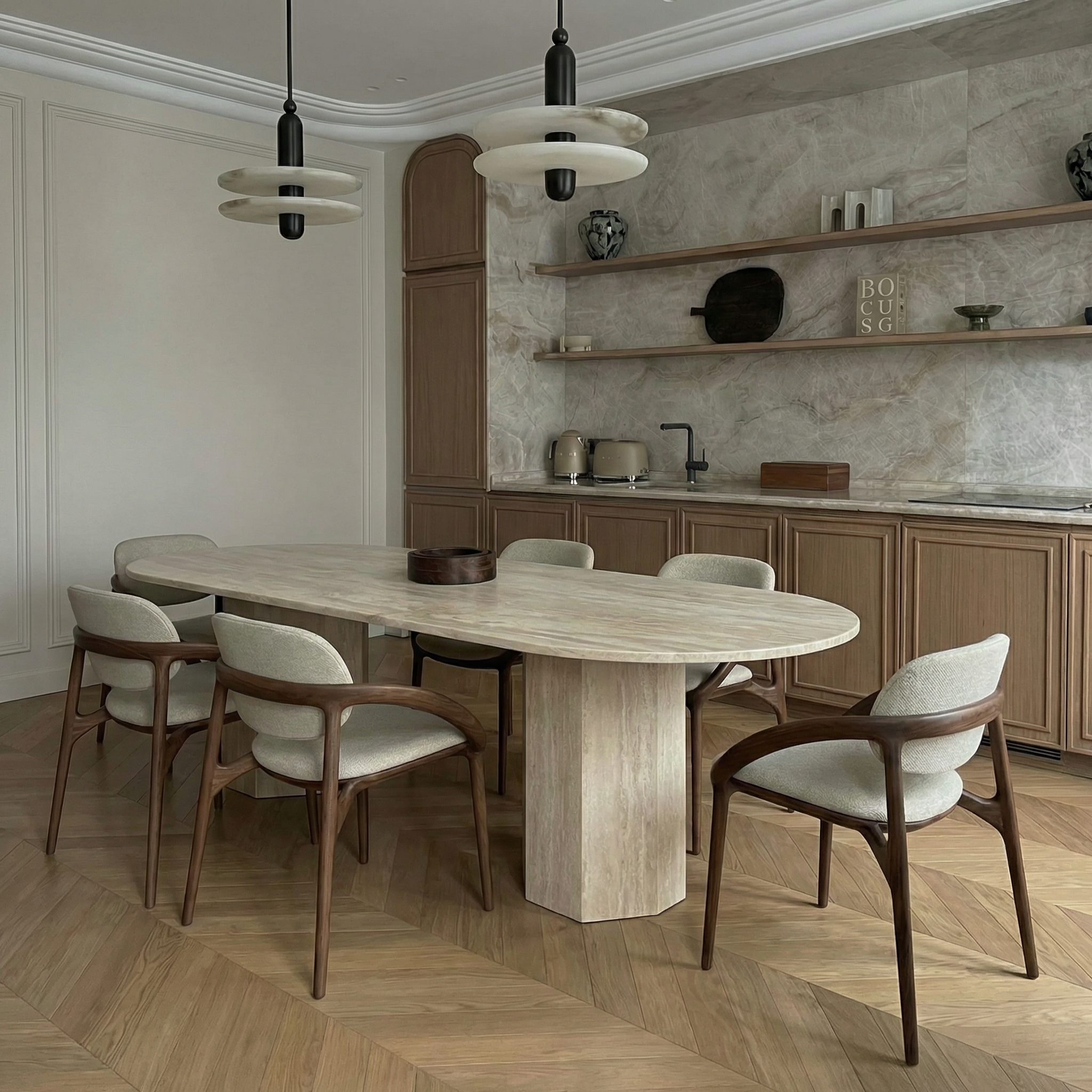 Klasik Traverten Vein Cut Modern Yemek Masası